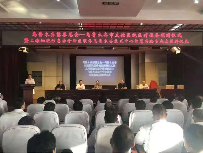 2月10日,乌鲁木齐慈善总会-乌鲁木齐市友谊医院医疗设备捐赠仪式暨上海张江细胞形态学技术中心乌鲁木齐市技术分中心(智慧实验室)揭牌仪式在市友谊医院门诊五楼多功能厅举行。乌鲁木齐市卫生计生委副主任王虹女士、乌鲁木齐市慈善总会常务副会长彭会联、友谊医院王刚院长以及长三角协调会智慧医疗发展联盟理事长、科宝智慧医疗科技(上海)有限公司董事长朱仁明等出席并参加揭牌仪式。